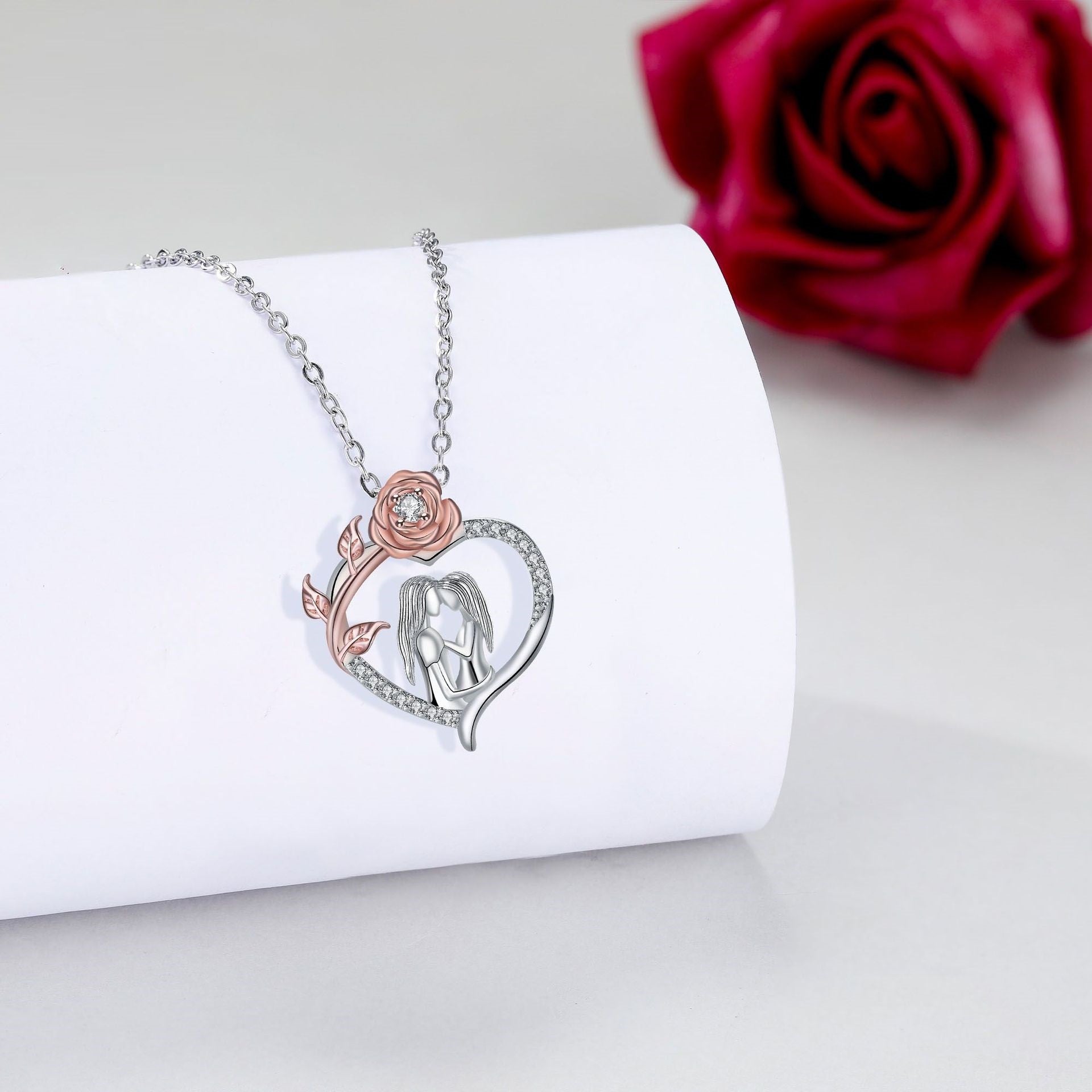 Heart-Shaped Rose Pendant Necklace – European & American Fashion, Mother-Daughter Set